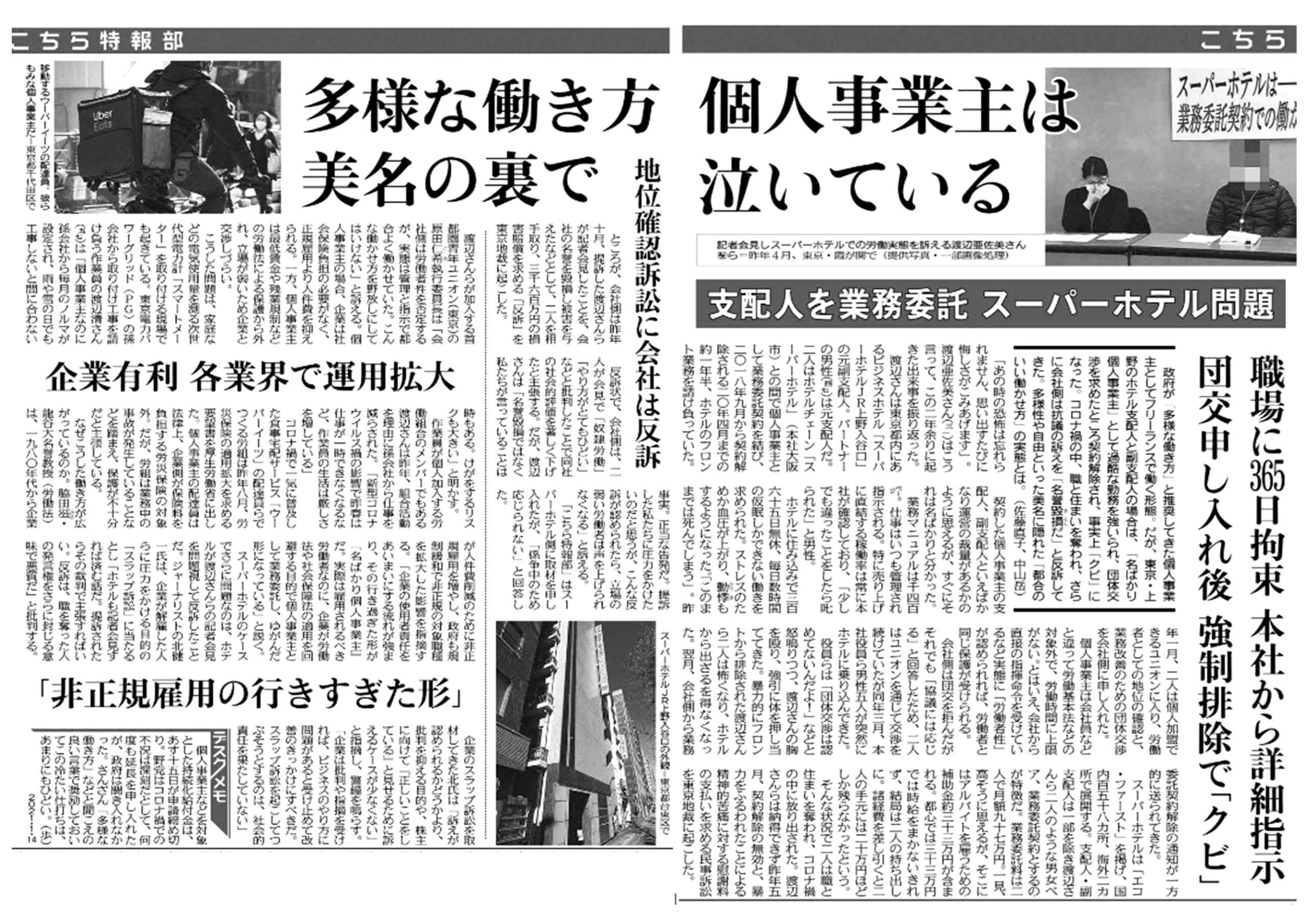 その結果、さまざまな事件の被害者として、つぎのようにフリーランスが登場してきた。
